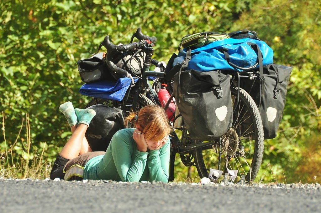 Though we usually hate tunnels (because they are scary: often no lights and absolutely no room for us beside the cars) during these past few days we have come to love them as they represent a short reprieve from the never ending wet. Since Kevin’s rain jacket is no longer waterproof, we stopped at one point in a tunnels so he could “dry out” his clothes for a bit. Of course, they never dried nor would it have mattered if they had because there was no escaping the rain one we left our shelter.