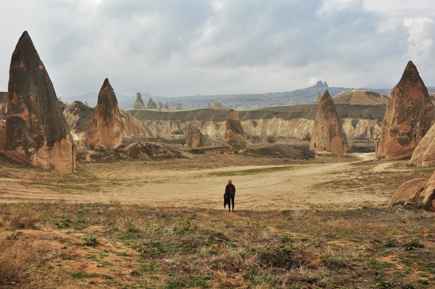 image Published January 9, 2015 at 4288 × 2848 in New Years and Cappadocia Myra (our friend) looking very small with all the rocks.