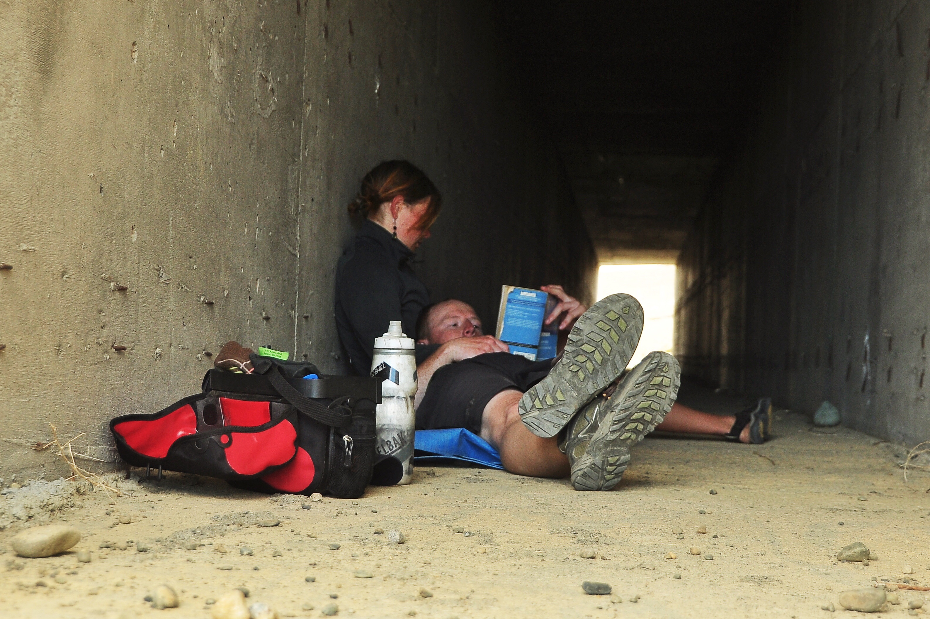 image Published February 25, 2015 at 3173 × 2110 in Headwinds, Fitzroy, and a Crazy Casa De Cyclistas: Argentinean Patagonia Reading in a tunnel when the wind got too strong. Patagonia, 2015.