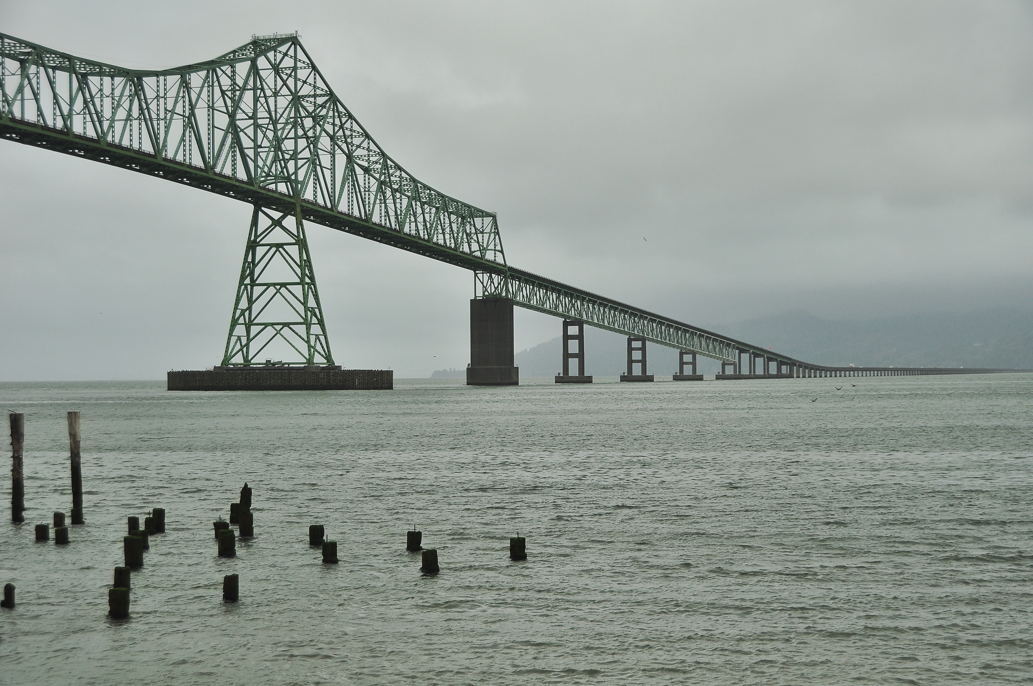The Astoria bridge which leads to Washington which is right on the other side of the Columbia river.